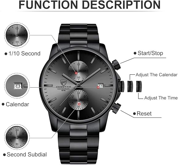 - ⌚Sports chronograph: Multifunctional sub-dial can work, chronograph, calendar, run seconds. Provide you with multi-function purpose use.