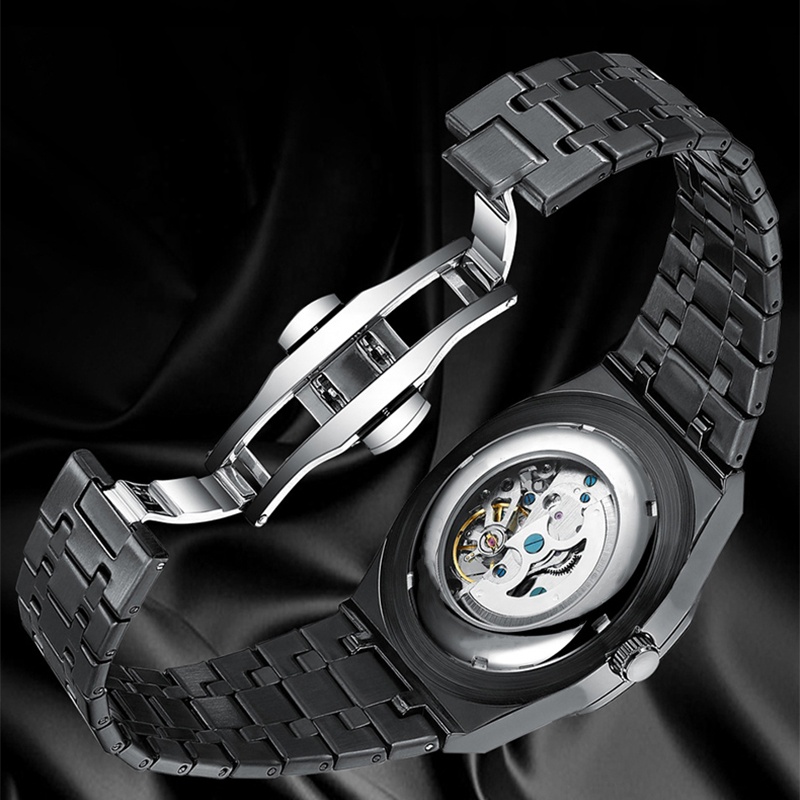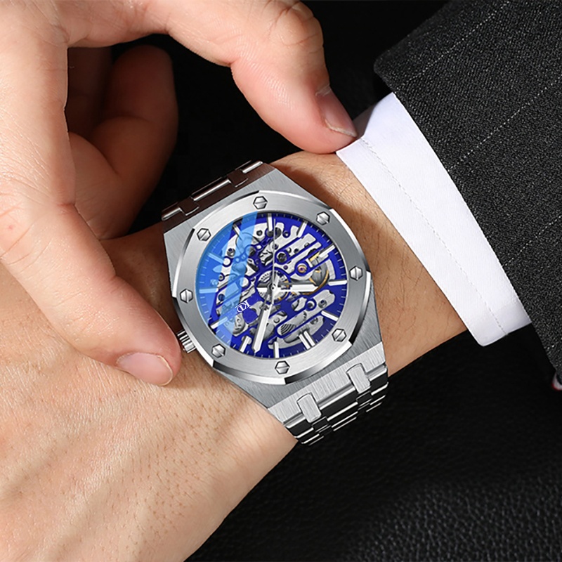 Luxury Men’s Sport Business Mechanical Watches Custom Logo Stainless Steel Band Water Resistant Luminous on Bezel lobinni