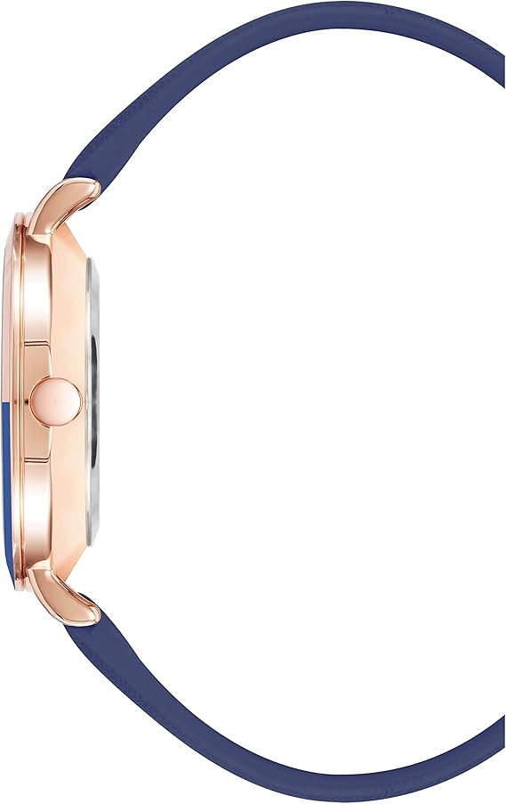 - Rose gold-tone and blue ombre dial with rose gold-tone hands and markers; debossed markers at all other hour positions